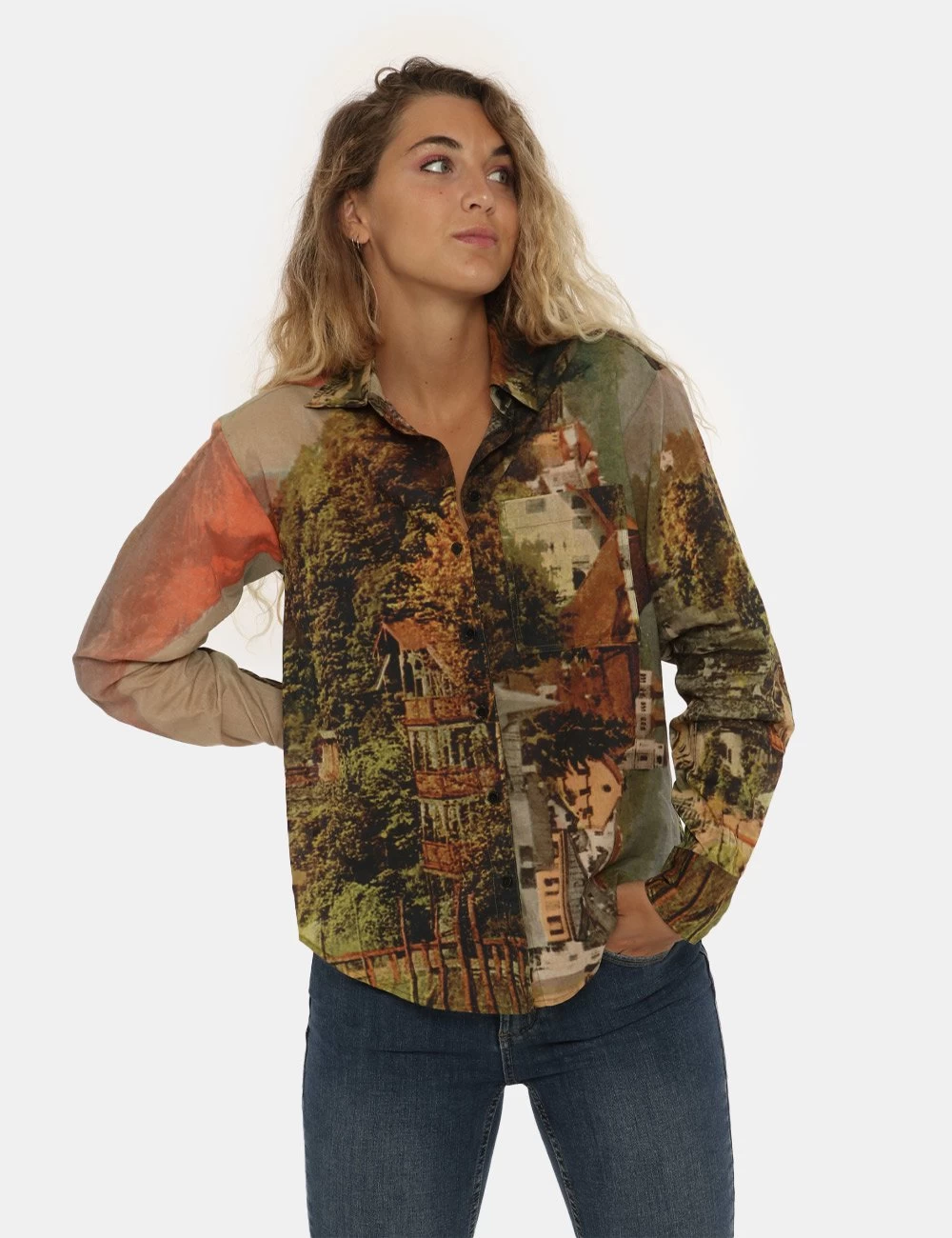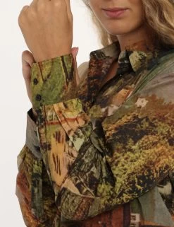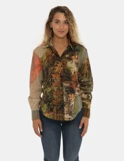 Camicia classica in fantasia tendente “Natura” tendente al marrone e verde. Presente taschino a toppa in tinta ad latezza cuore. La vestibilità è morbida e pratica grazie a bottoni in tonalità coordinata sul fronte. La camicia è adatta per occasioni casual e facilmente combinabile per outfit diurni e serali. Praticità e stile in un solo capo.