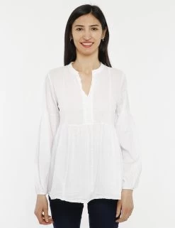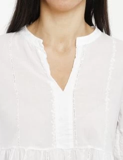 Scegli questa camicia con scollo a V e ricami su tono per look riffinati. Ideale con una gonna aderente e una scarpa bassa