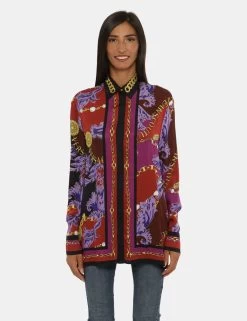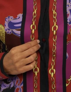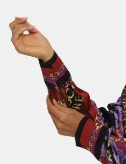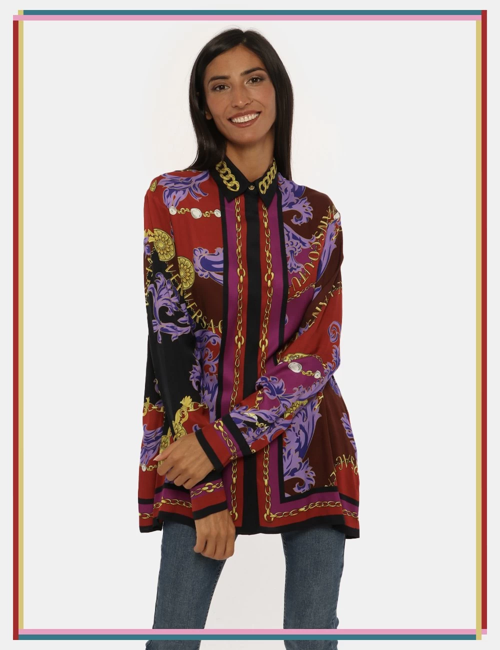 Camicia in viscosa ed in total fantasia sgarciante tendente al rosso e viola. La vestibilità è morbida e pratica grazie a bottoni ad asola in tinta. La camicia è adatta per occasioni casual e serate vivaci. Troppo fashion per non averla. L’articolo appartiene al campionario esclusivo di stagione: pezzo unico.