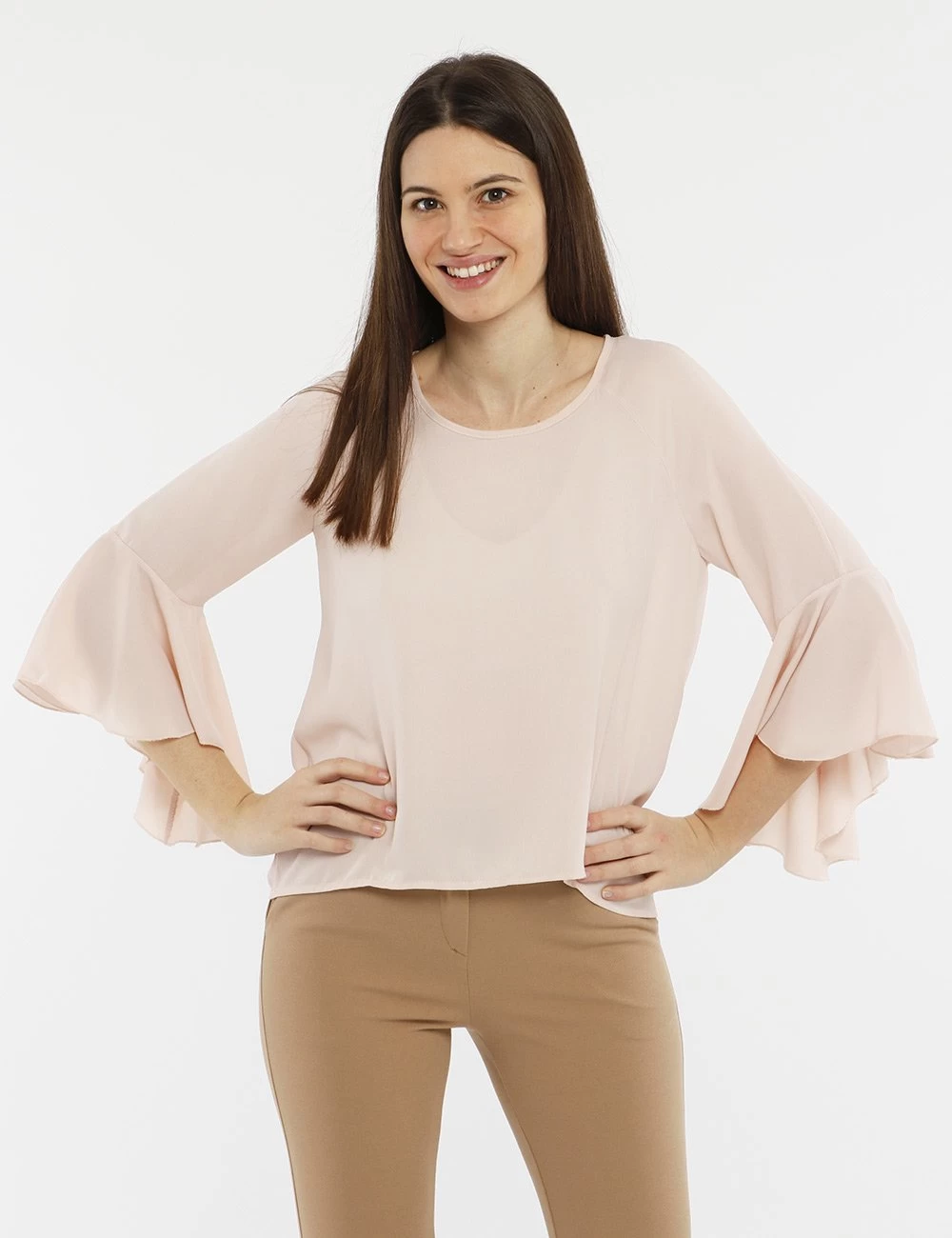 Una camicia leggera con maniche volant ideale per look irresistibilI! Abbinala a un pantalone aderente e crea il tuo stile al meglio!