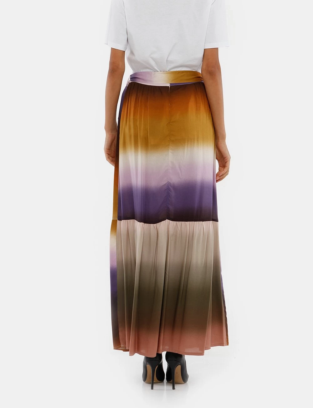 Lo stile di questa gonna è molto affascinante grazie alla sfumatura del tessuto! Un modello leggero e semplice che crea outfit originali! Con zip invisibile posteriore e cintura in tessuto