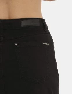 Mini gonna in jeans in total black. Presenti tasche a toppa sul retro e tasche sagomate sul fronte. La vestibilità è morbida e pratica grazie a bottone ad asola più zip con passanti in girovita per l’utilizzo di un’eventuale cintura. La gonna è adatta per occasioni casual e facilmente combinabile per outfit diurni e serali. Fashion addicted.