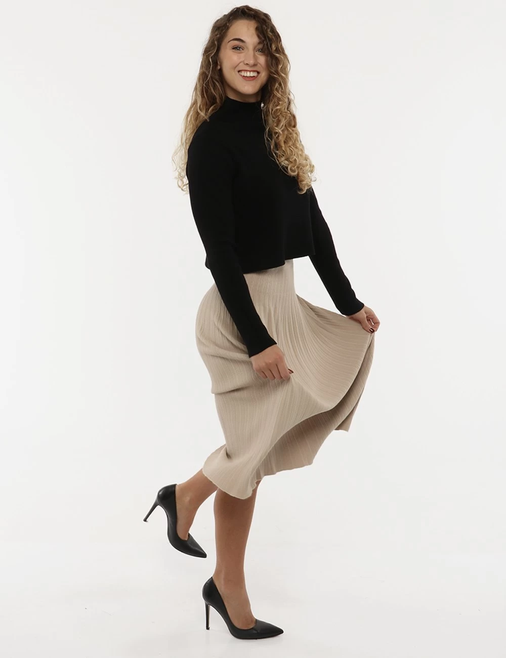 Strepitosa gonna midi in maglia plissettata. Morbidissima. Calda e super elegante. E’ un articolo che quando lo guardi per la prima volta è difficile non scaturisca amore a prima vista. Aggiungila subito al tuo carrello senza esitazioni!