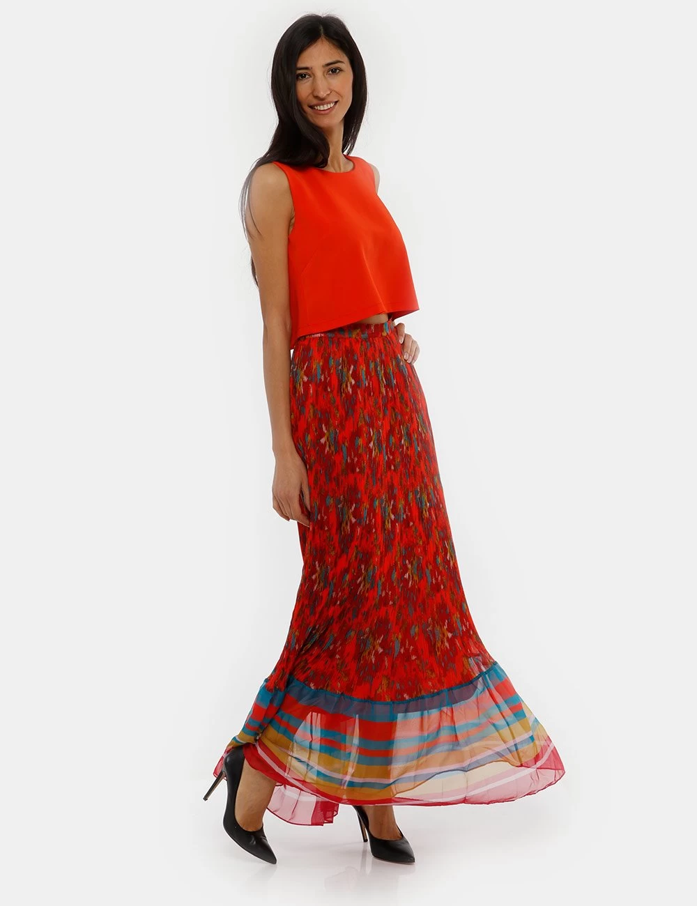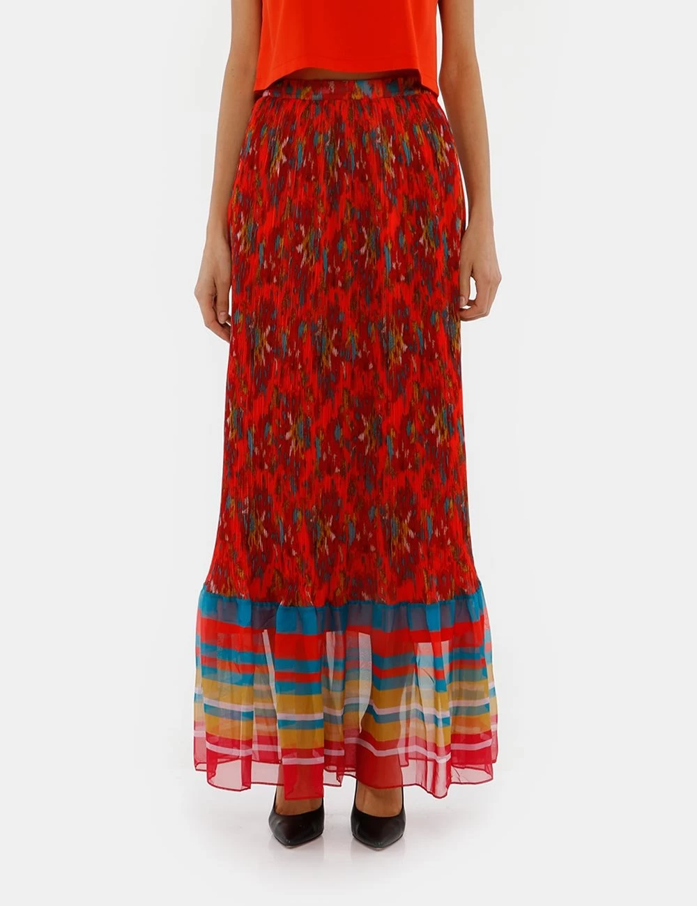 Una gonna con zip invisibile a lato per dare colore alla tua mise! Scegli questo modello microplissettato e con orlo velato per dare una nota cool alla tua mise da giorno. Un tocco di stile irresistibile!