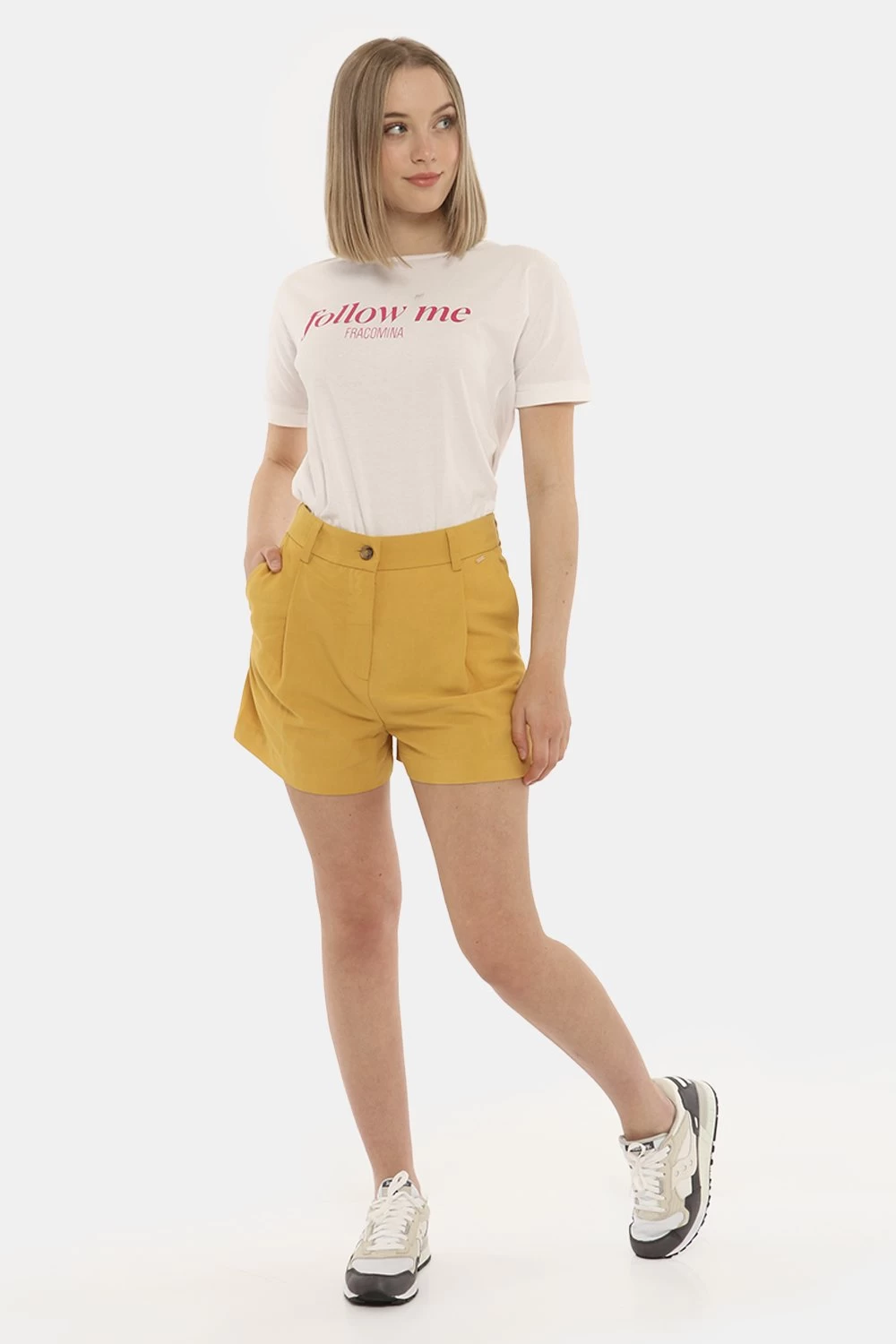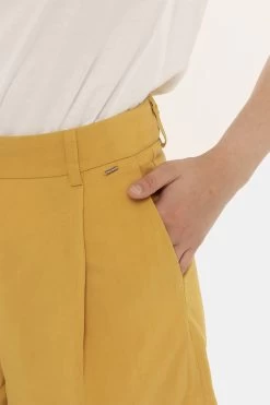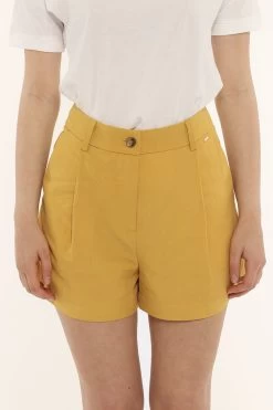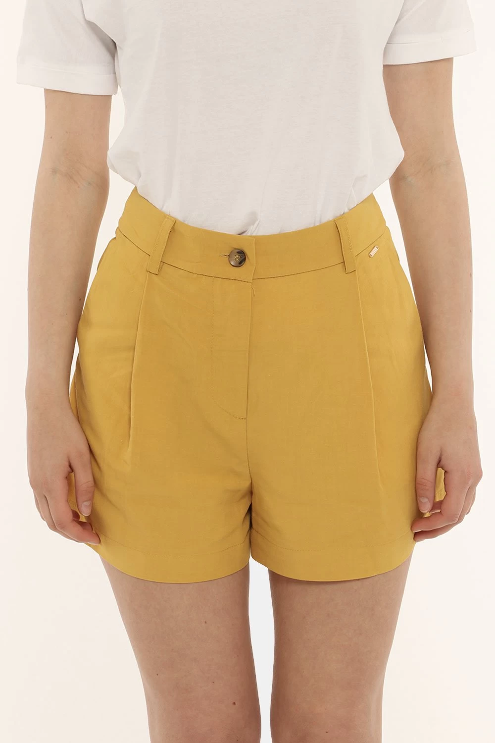 Short in total giallo senape con tasche a taglio trasversale sul fronte. La vestibilità è morbida e pratica grazie a bottone ad asola più zip ed eventuale cintura. Gli short sono adatti per occasioni casual/raffinate. Il tuo nuovo capo must-have.