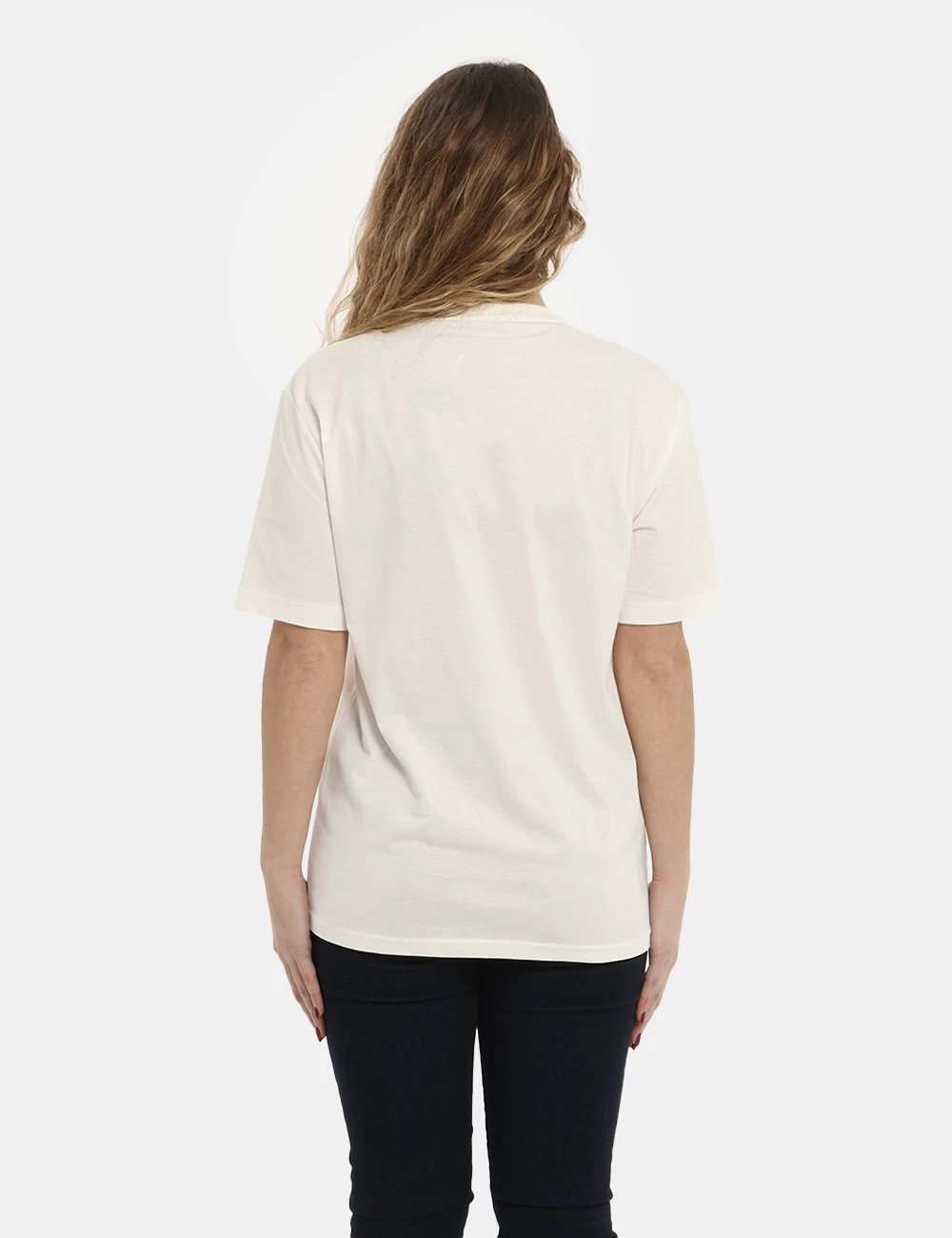 T-shirt su sfondo bianco con stampa logo brand in tinta nero e rosso. La vestibilità è morbida e regolare. La t-shirt è adatta per occasioni casual e facilmente combinabile per outfit diurni. Inseriscila nel carrello per sapere sempre cosa mettere.