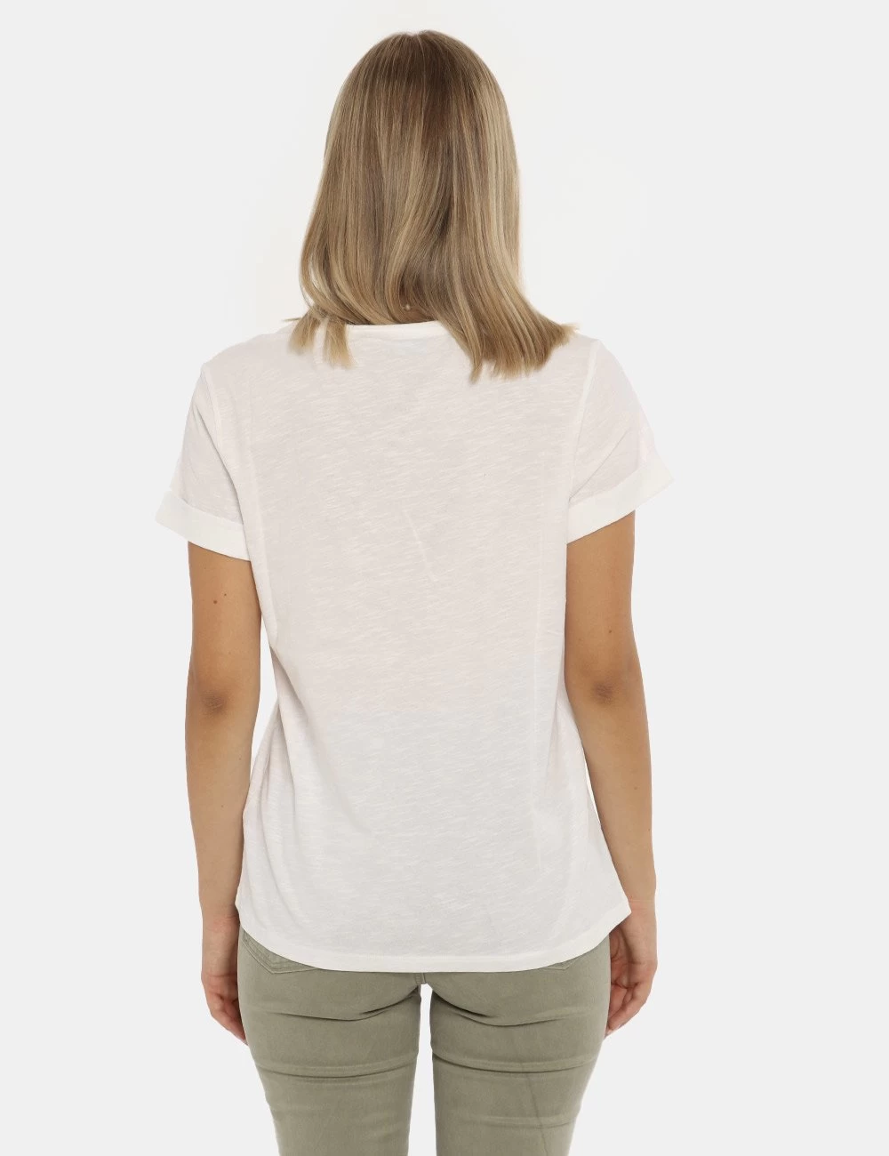 T-shirt su base bianca con stampa logo brand nero. Presente risvoltino sulle maniche corte. La vestibilità è morbida e regolare. La t-shirt è adatta per occasioni casual. Il tuo prossimo articolo nei prodotti salvati.
