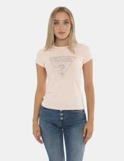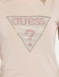 T-shirt su base rosa chiaro con stampa Guess in glitter coordinati. La vestibilità è morbida e regolare. La t-shirt è adatta per occasioni casual/raffinate e facilmente combinabile per outfit diurni/serali. Aggiungila al tuo guardaroba per spiccare con stile.