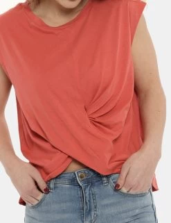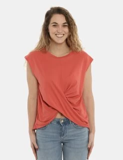 T-shirt giromanica in total rosso chiaro. La particolarità del capo sta nell’arricciatura che porta a scoprire l’ombelico. La vestibilità è morbida e regolare. La t-shirt è adatta per occasioni casual e facilmente combinabile per outfit diuni. Indossala per essere sempre a tuo agio.