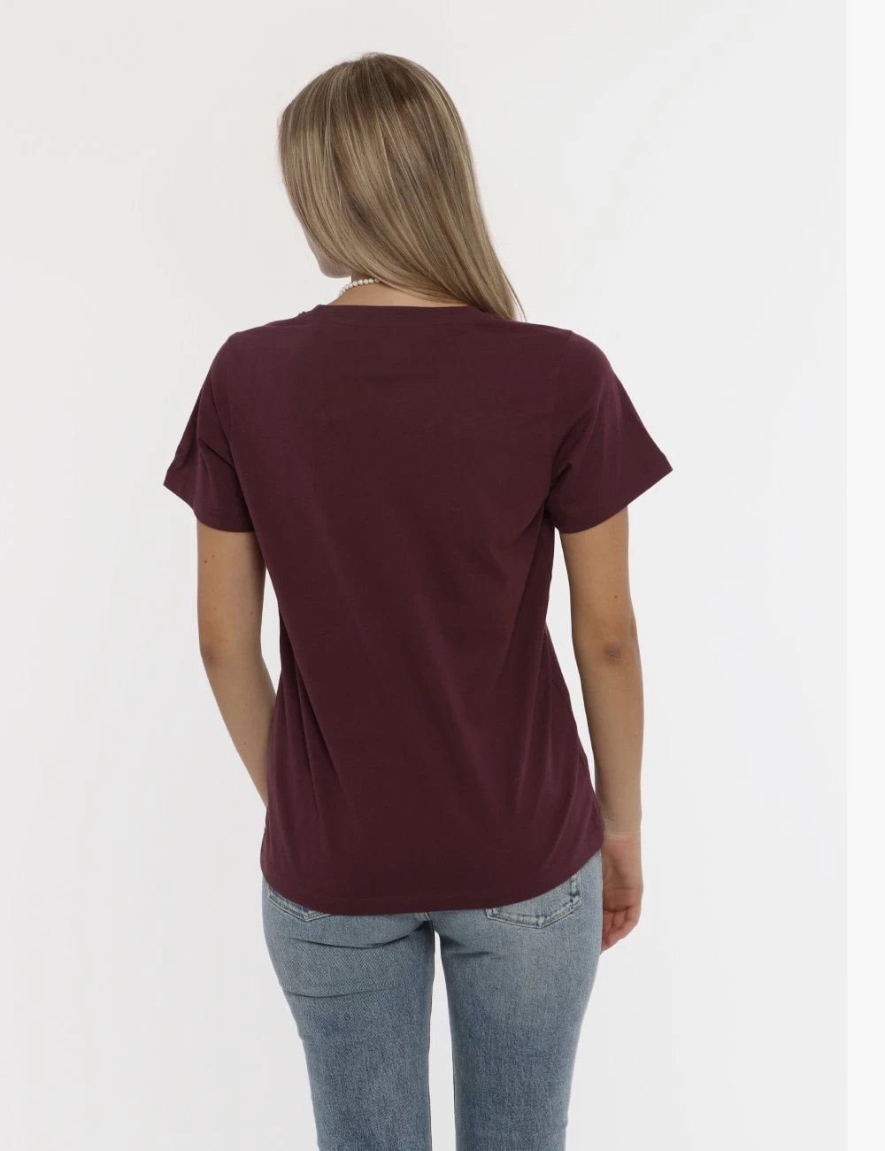 T-shirt su sfondo bordeaux con stampa logo brand in bianco. La vestibilità è morbida e regolare. La t-shirt è adatta per occasioni casual/sportive facilmente combinabile per outfit diurni e serali. Un capo così non può mancare nel tuo guardaroba.
