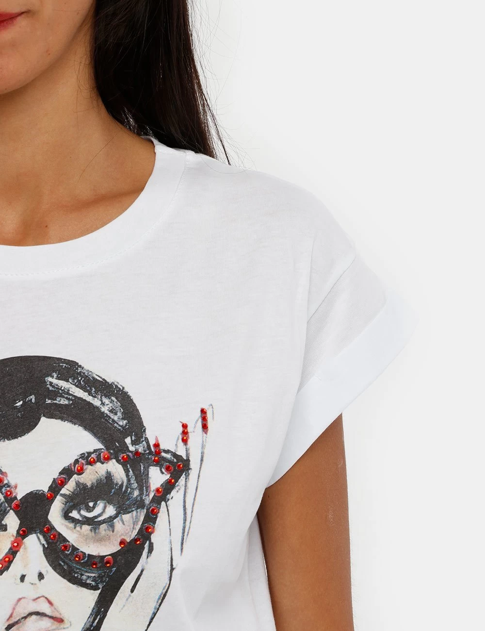 Prova subito questa maglietta in cotone stampata per dare un tocco chic alla tua mise casual grazie alla sua stampa raffinata! Abbinala a un jeans per un look pratico e veloce!