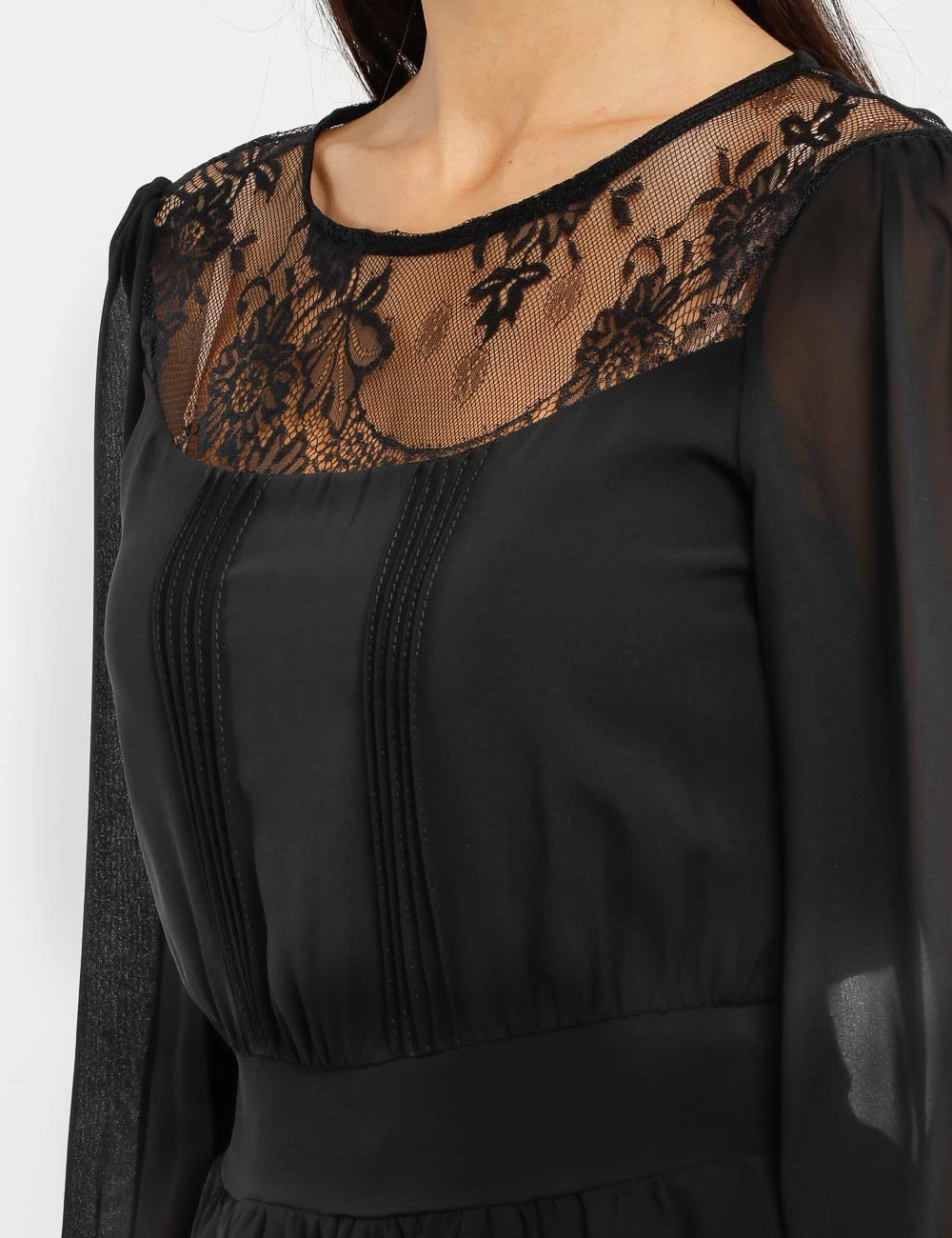 Crea look semplici ma unici con questo abito lungo con dettagli in pizzo e trama plissettata. Abbinalo subito a un paio di stivaletti