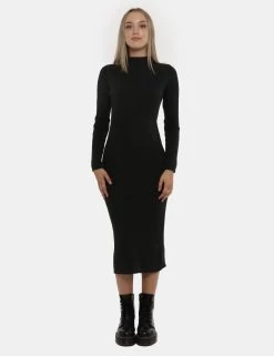 Vestito lungo in maglina a maniche lunghe. Il capo si presenta in total nero. La vestibilità è morbida e regolare. Il vestito è adatto per occasioni casual/raffinate. Fashion addicted.