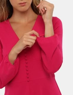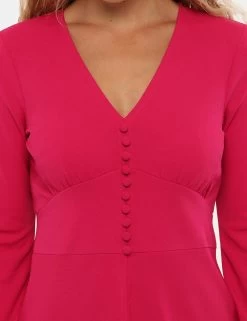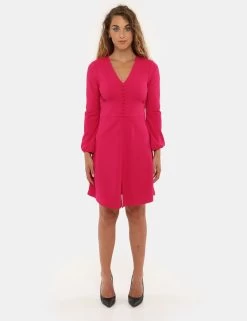 Un vestito elegante e raffinato per momenti chic! Scollo a V e manicha con polso stretto per definire al meglio un look da sera! Il tocco unico è la fila centrale di finti bottoni. Perfetto con una scarpa con tacco