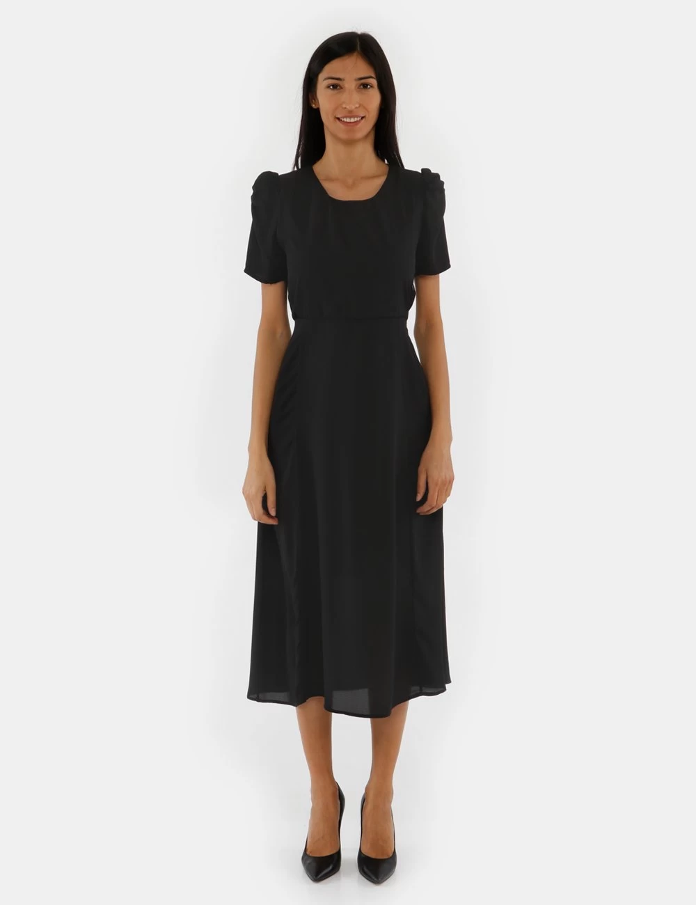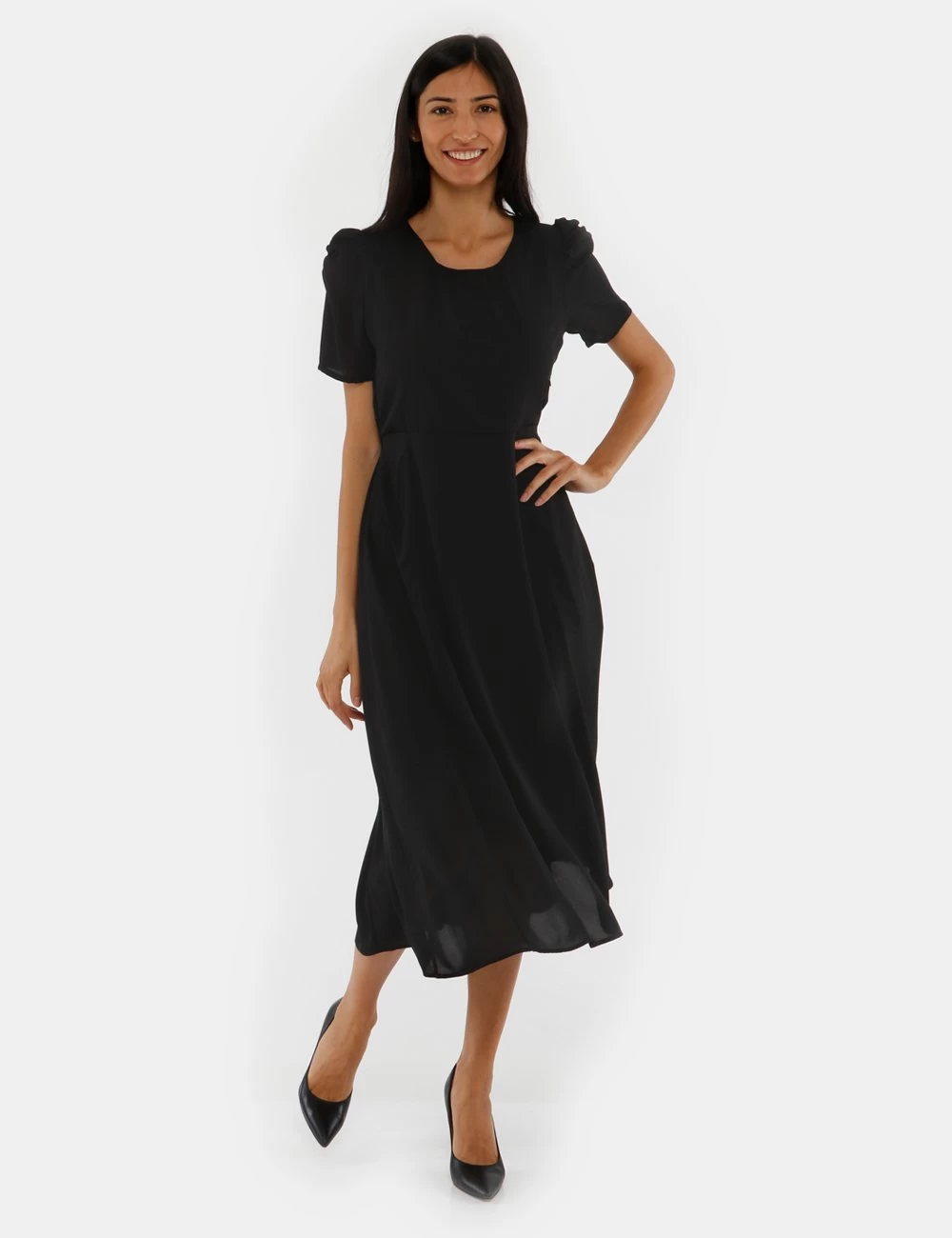 Scegli la semplicità con questo abito a maniche corte! Un modello ordinario perfetto dalla mattina alla sera. Completa il look con una scarpa bassa
