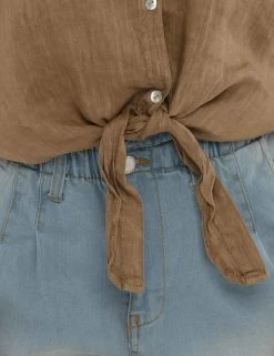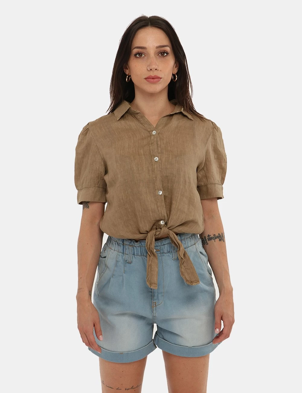 Abbina questa camicia a maniche corte con nodo centrale per un tocco rivoluzionario al tuo stile casual! Un concentrato di stile unico e irresistibile!