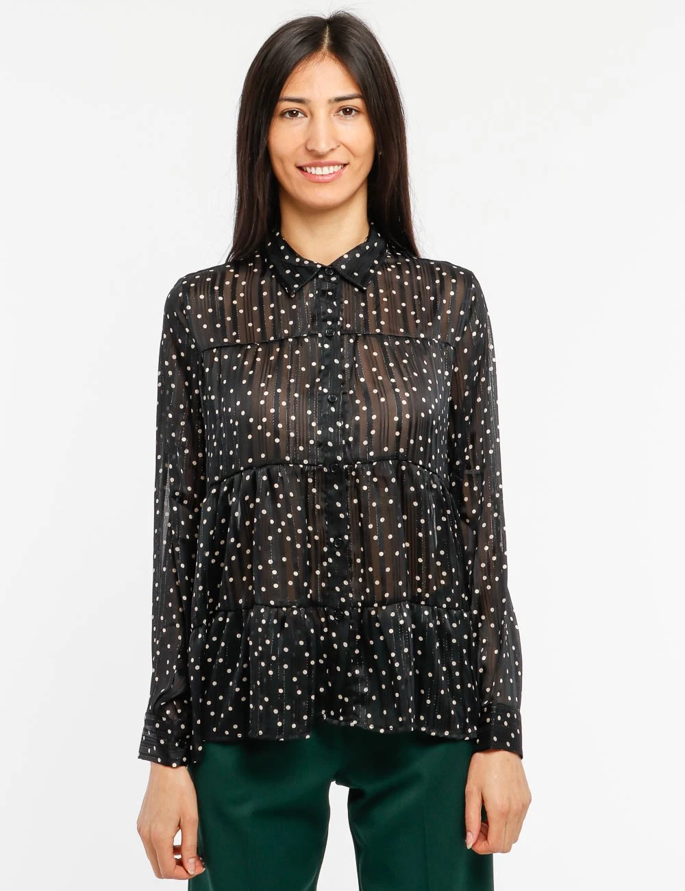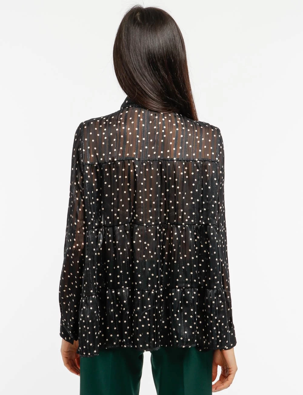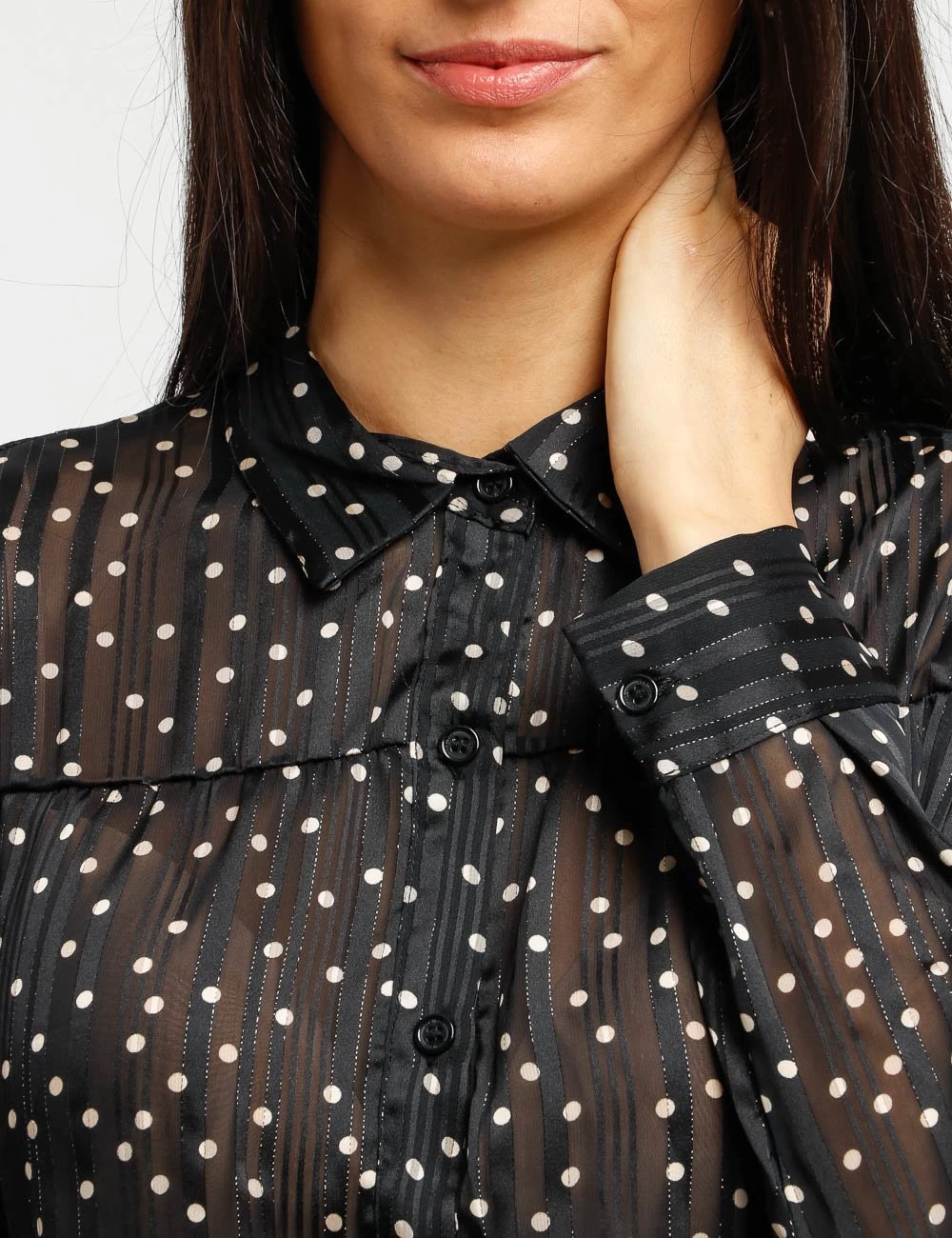 Per una punta di raffinatezza alla tua mise da iorno scegli questa camicia a pois a effetto velato! Abbinala subito a un pantalone classico e preparati a vivere l’ufficio con classe!
